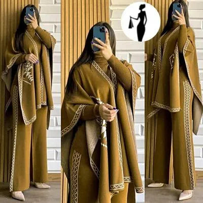 Front And Back Printed Upper Shawls With Premium Rib Plain High Neck And Flapper 3Pcs