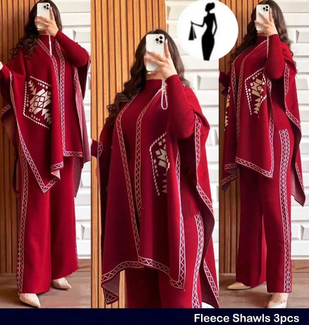 Front And Back Printed Upper Shawls With Premium Rib Plain High Neck And Flapper 3Pcs