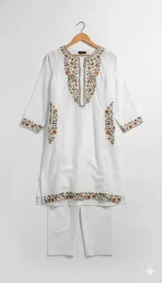 Elevate your everyday wardrobe with this stunning Women's Stitched set featuring a round-neck embroidered shirt paired with comfortable plain linen trousers. Perfect for casual outings or relaxed days at home, this ensemble combines style and comfort effortlessly. Available in a timeless white color, this 2-piece set is a must-have for fashionable women seeking versatile options.