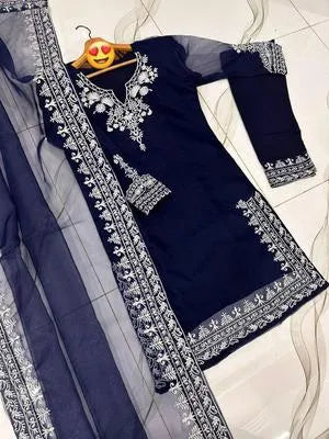 • Neck,Sleeves Shirt Border With Four Sided Heavy Embroidery Dupatta 3Pcs